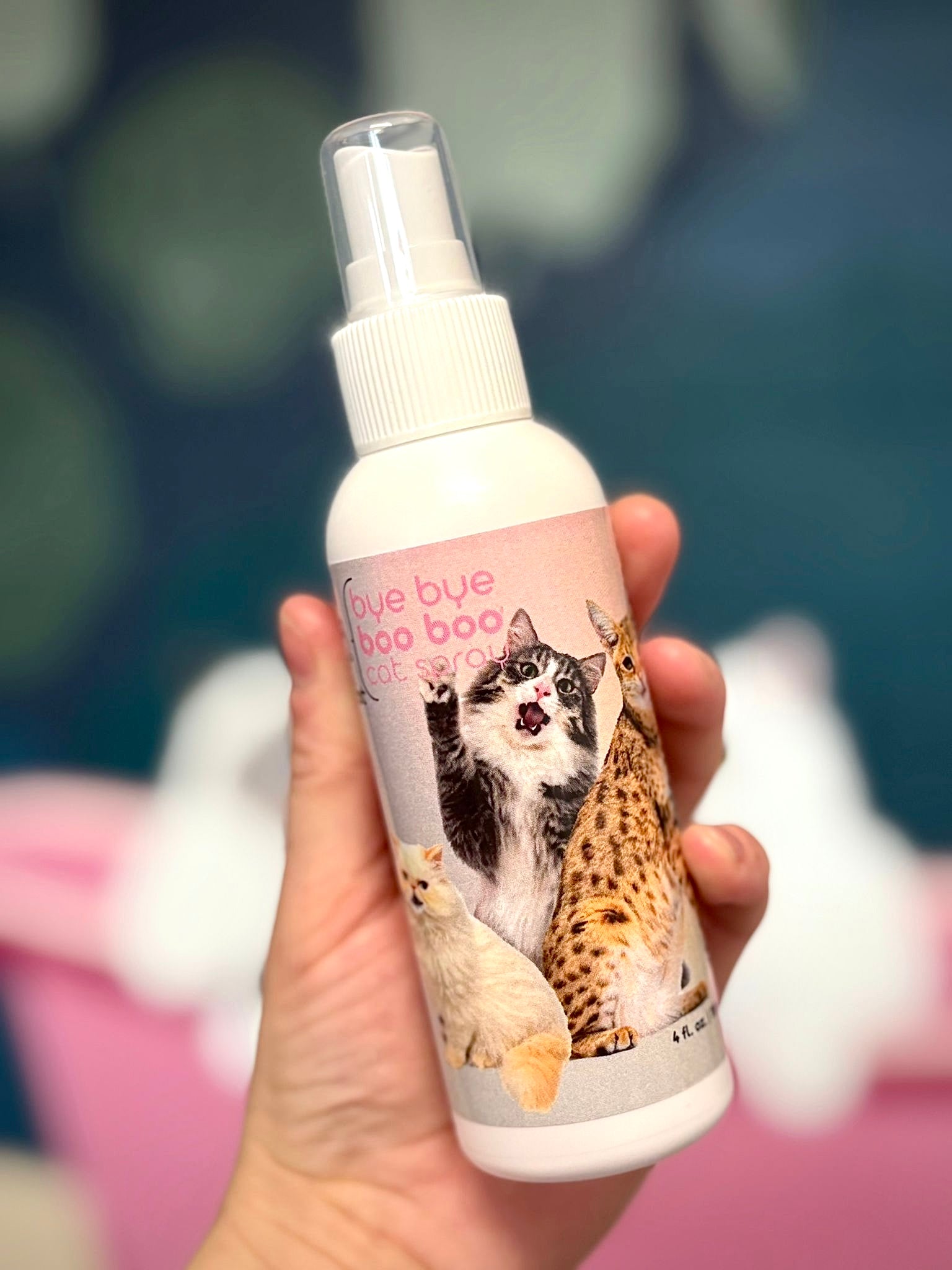 Even the most blissful of cats may have the occasional skin issue that needs a bit more attention…something extra to help them heal and be comfortable. Bye Bye Boo Boo Cat Spray features the power of herbal components working together to soothe your cat’s discomforts. Stops the itch cycle on contact. Promotes the healing process. Great for minor skin irritations, bug bites, sunburn, clipper and brush irritation, banged tails, abrasions, rashes + soothes and cools. Alcohol-free. Spray as needed. Reapply as desired.